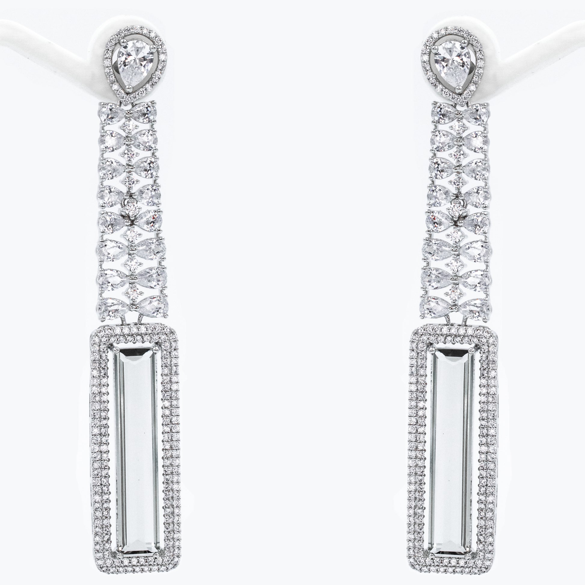 Silver Grand Olive Green Drop Earrings