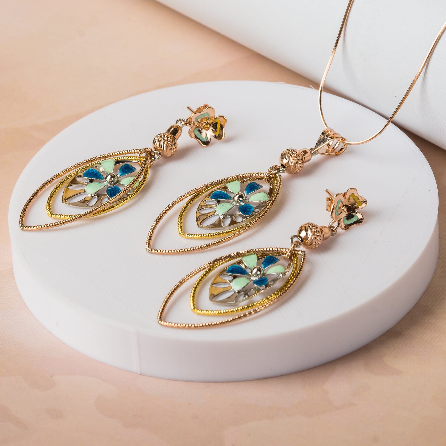Two Tone Pastel Flower Pendant Set