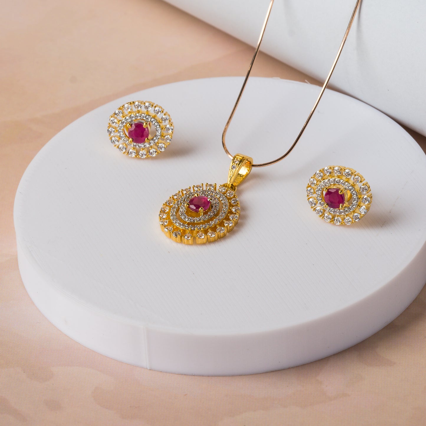 Gold With Pink Stone Pendant Set