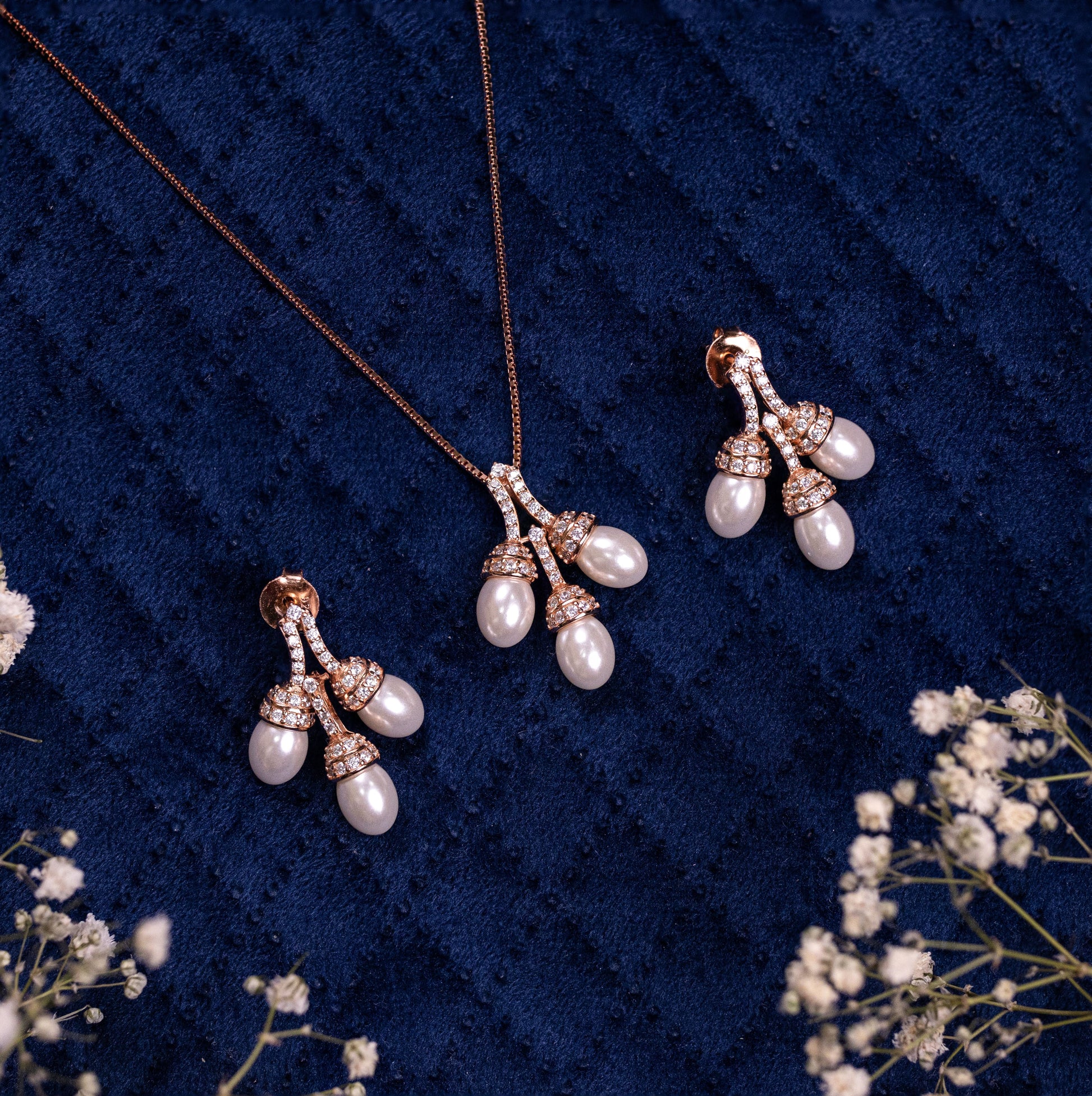 Rose Gold Pearl Trifecta Pendant Set