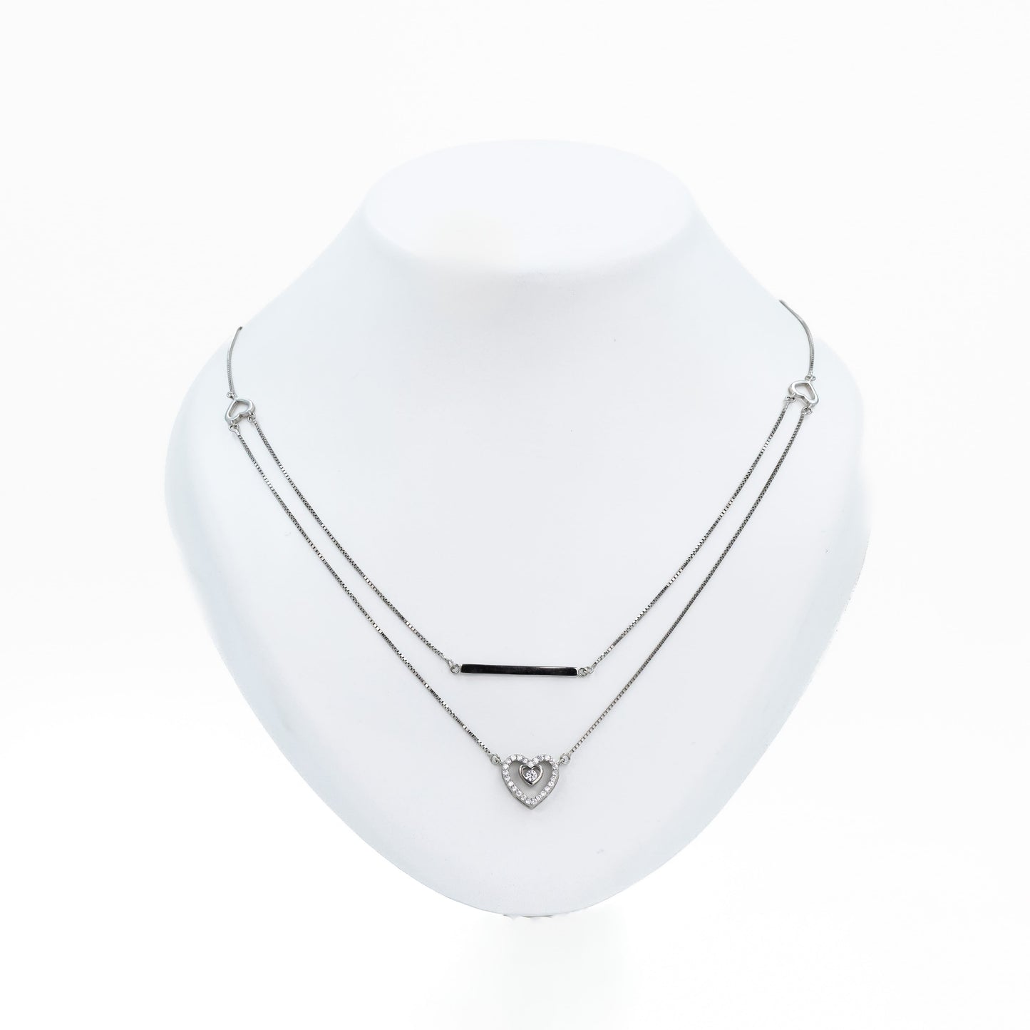Silver Parallel Heart Chain Pendant