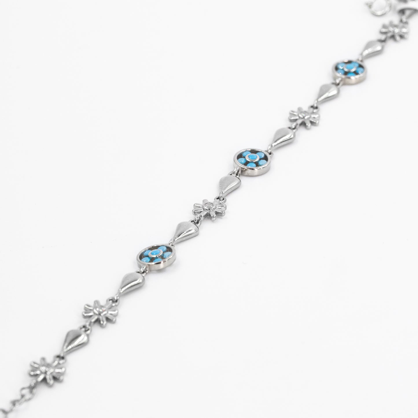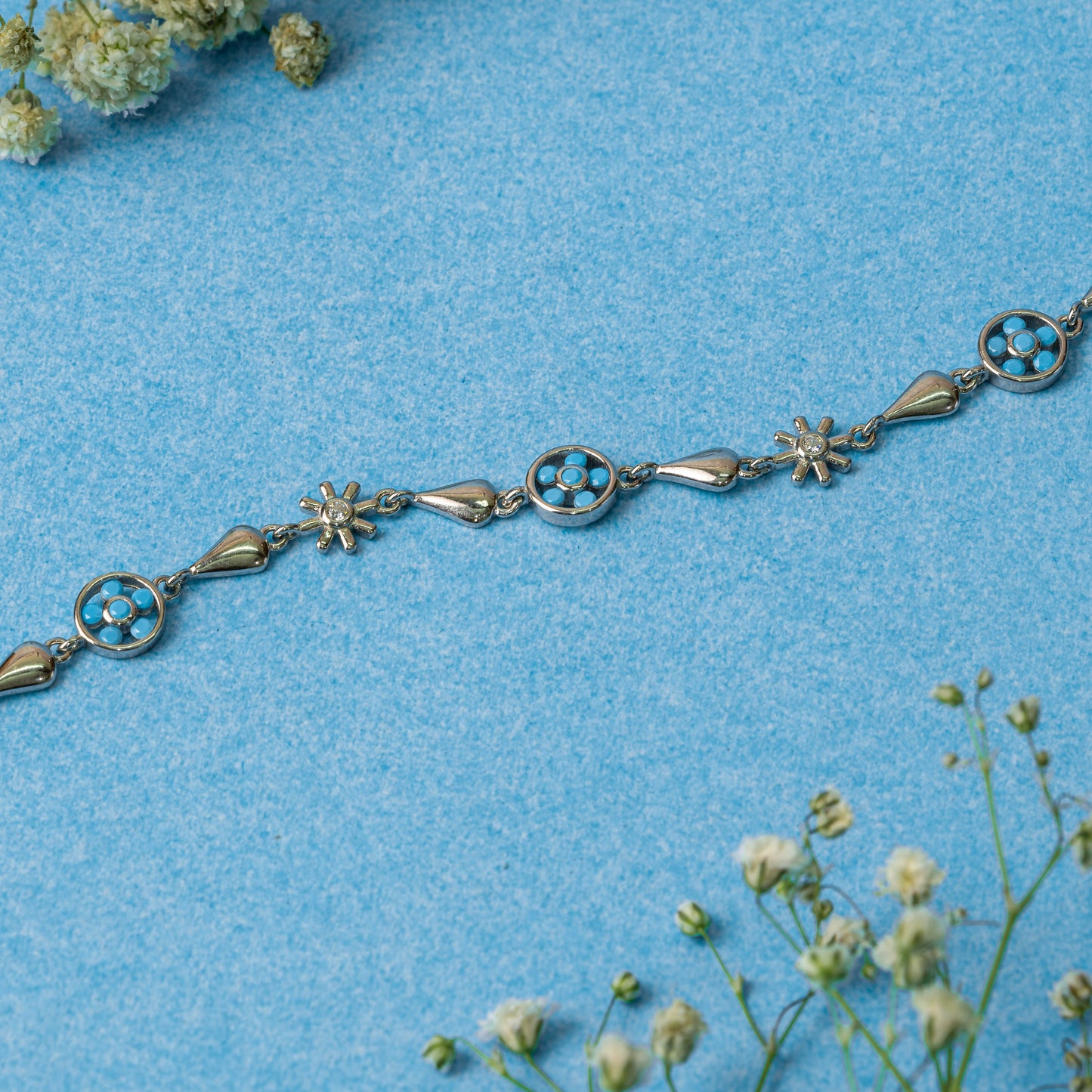 Silver Floral Blue Petals Bracelet