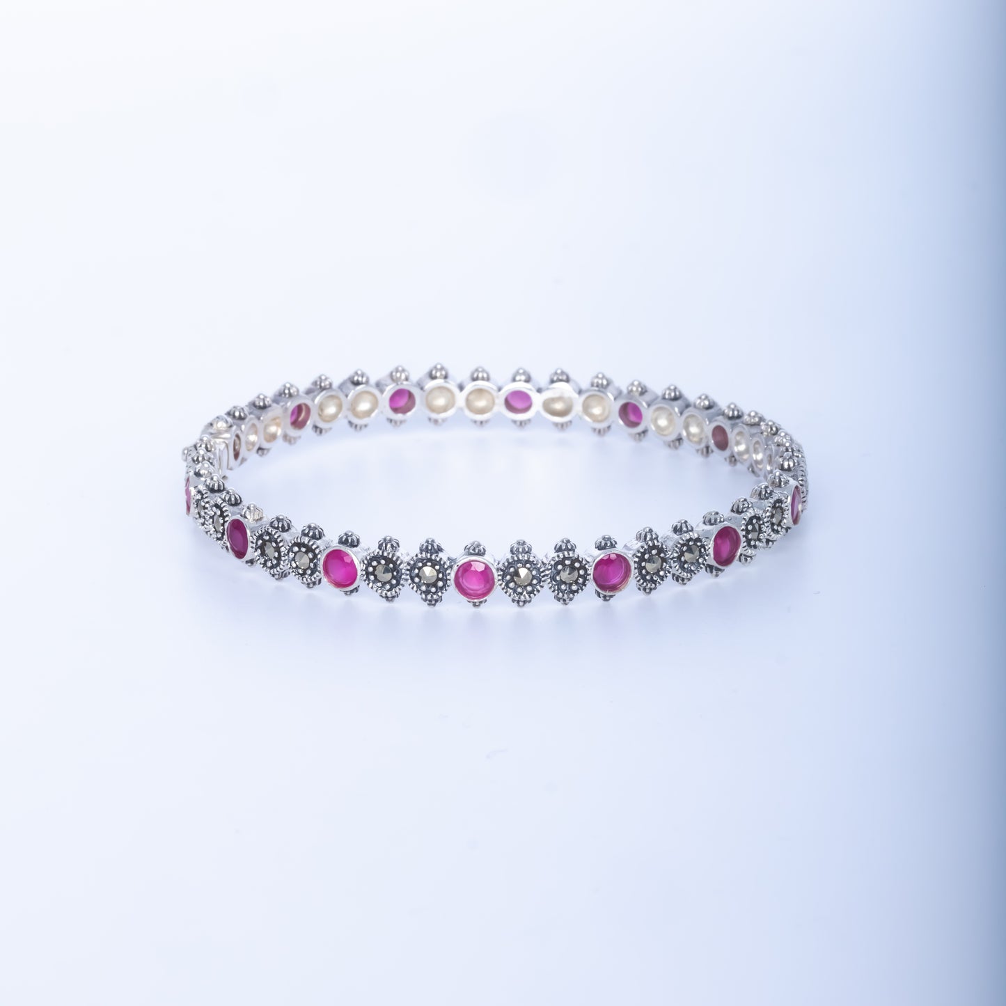 Silver Marcasite Ruby Kada/Cuff