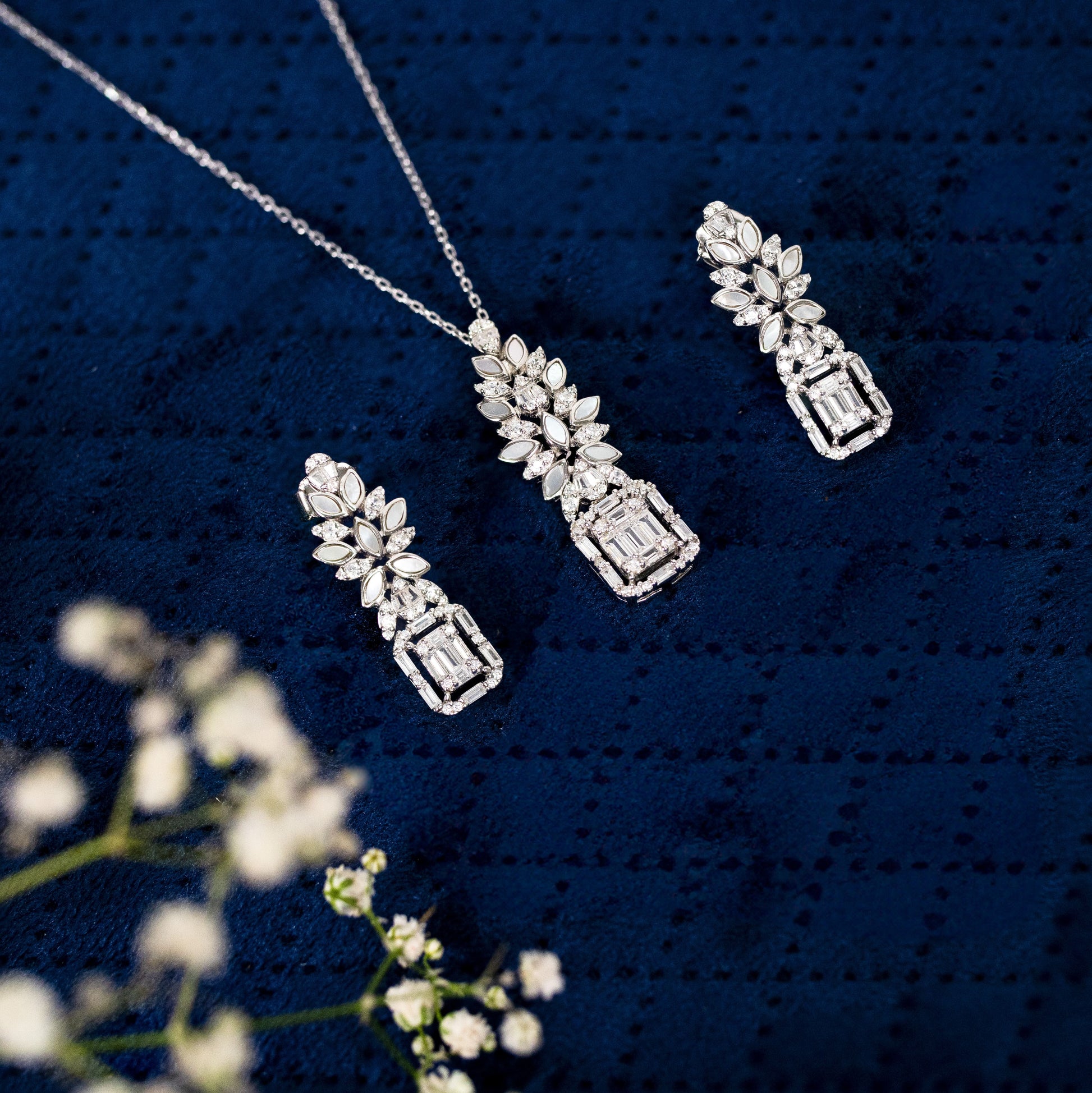 Silver Gleaming Flora Pendant Set