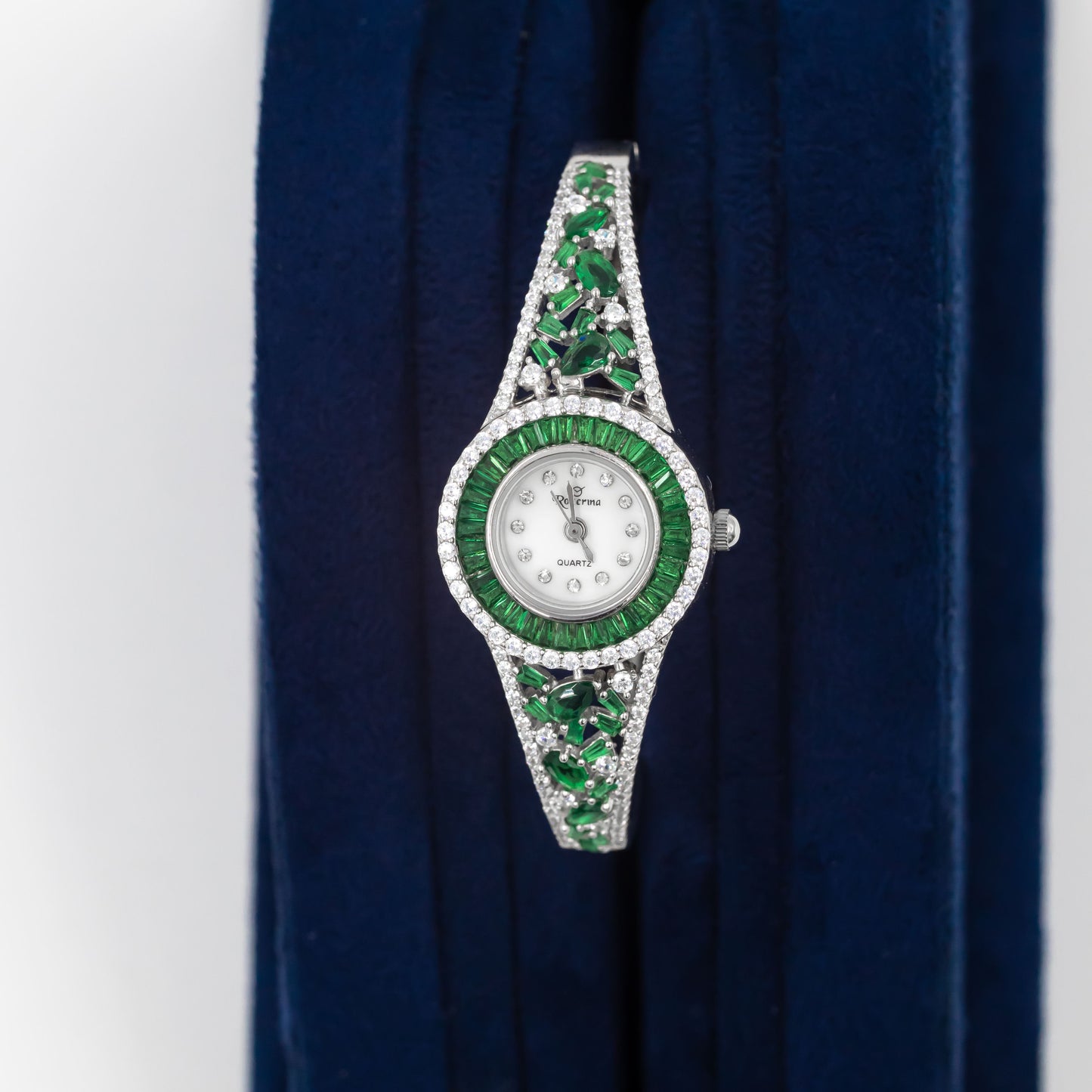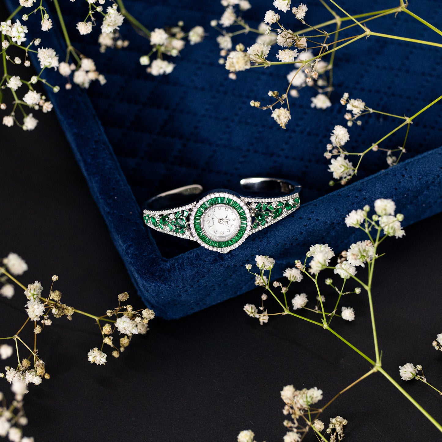 Silver Titan Emerald Cuff Watch