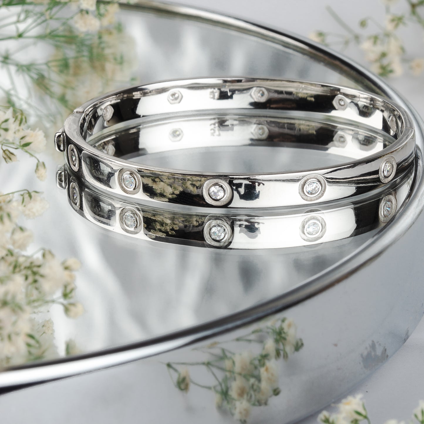 Silver Heavy Minimal Solitaire Cuff/Kada