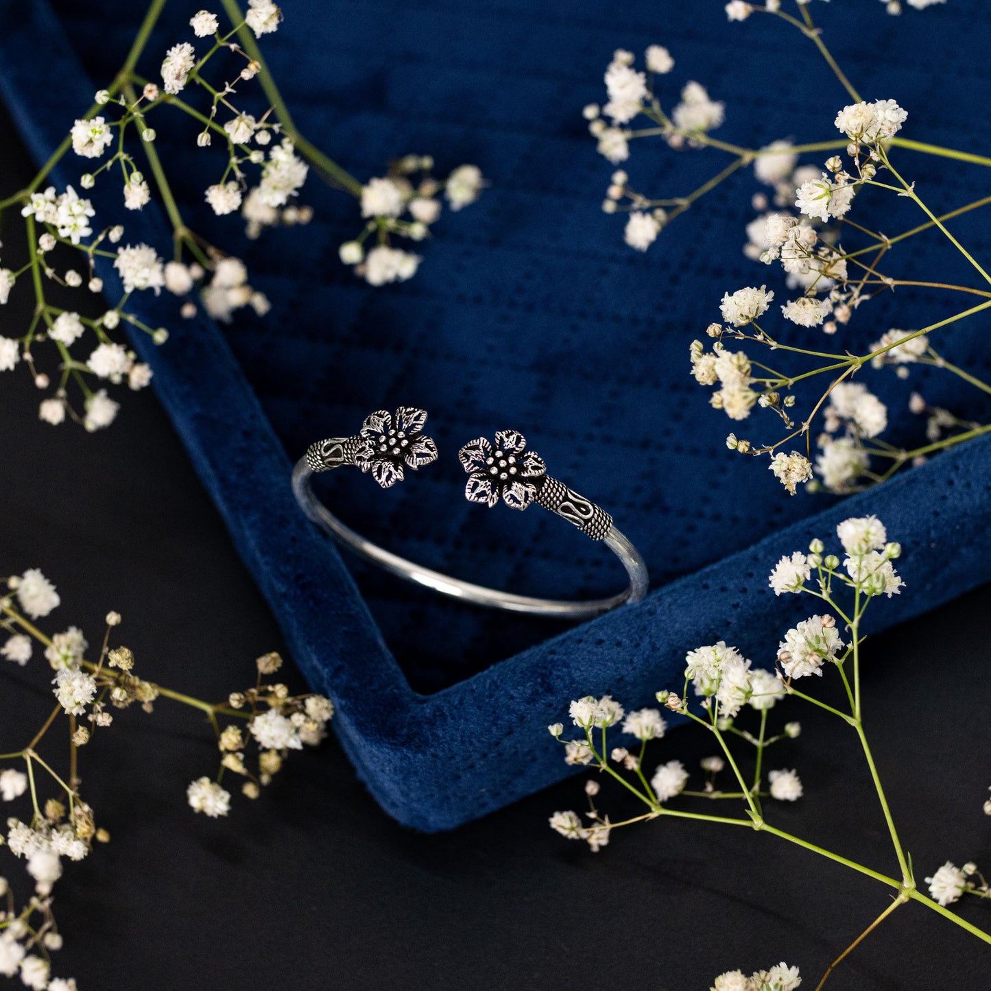 Silver Vintage Bloom Cuff/Kada