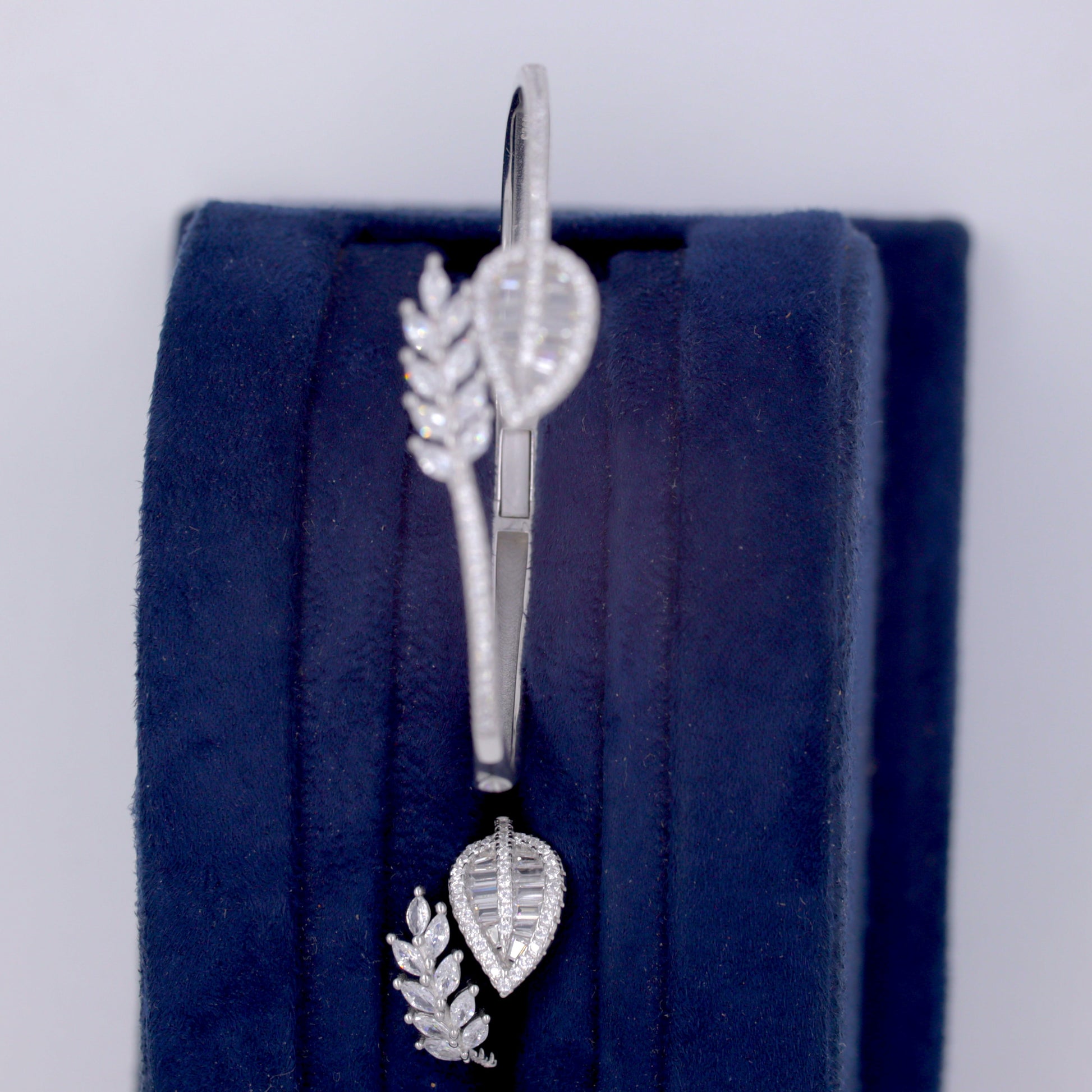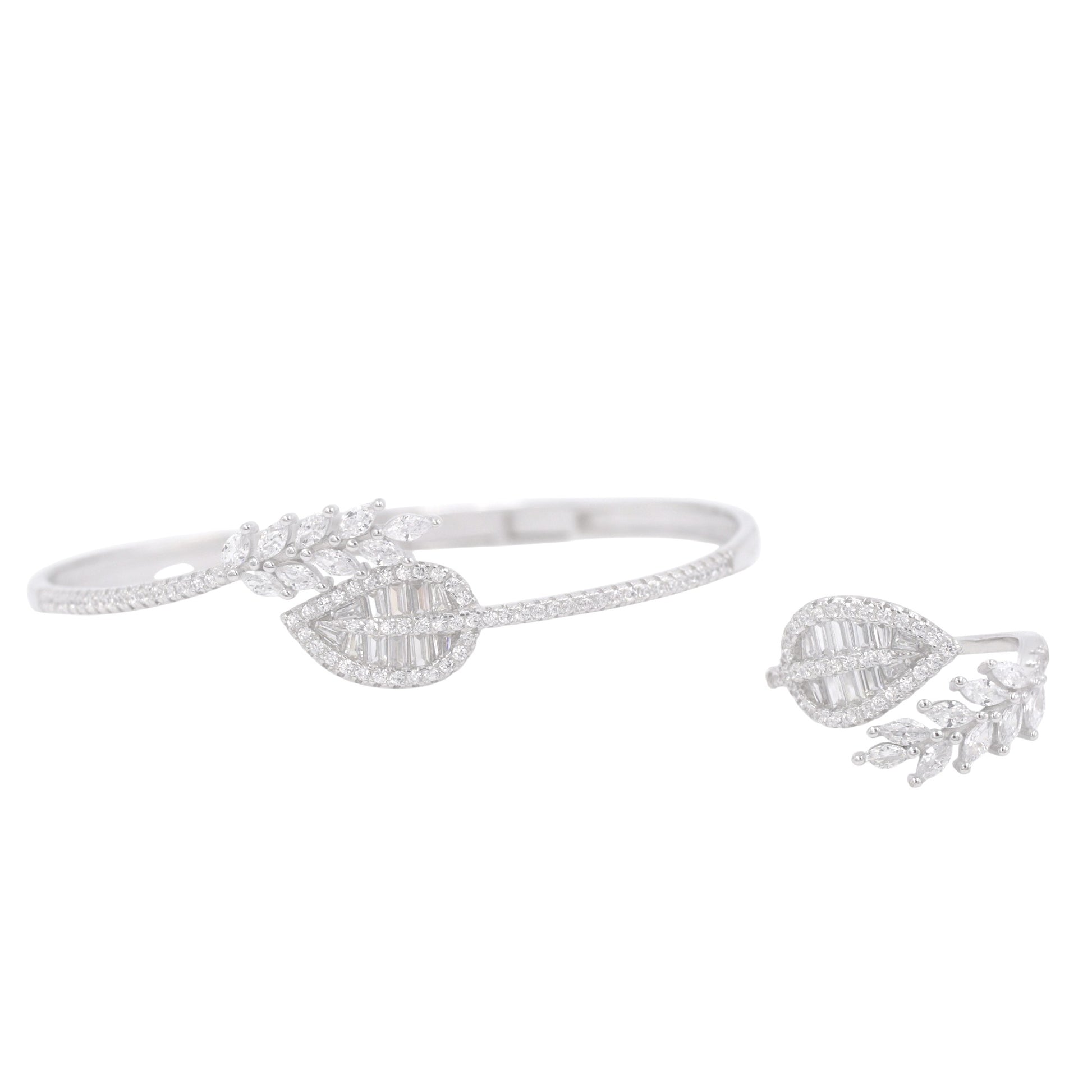 Silver Zircon Leaf Cuff/Kada With Ring Set
